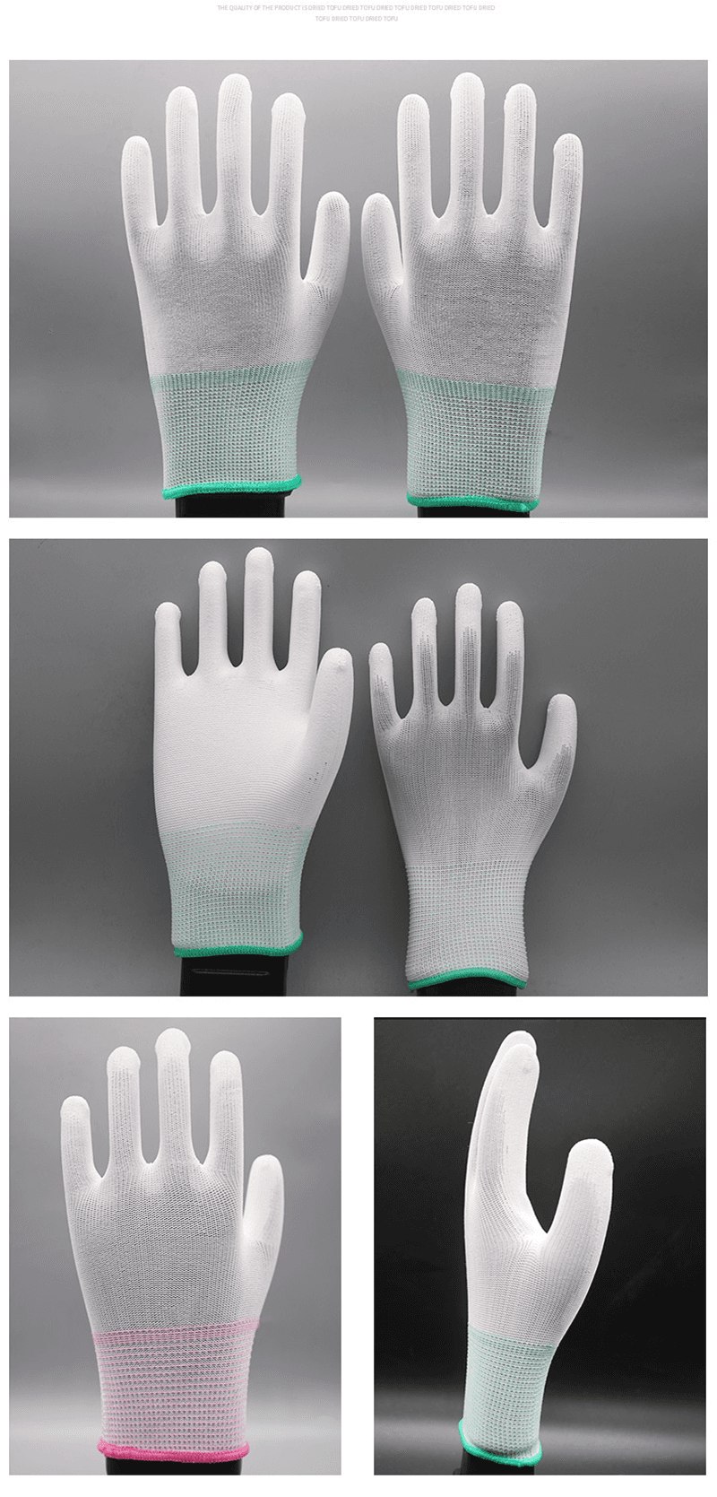 Відмінна проти ковзання та стійкі до зносу продуктивність: долоня обробляється спеціальним покриттям PU, що не тільки покращує ефективність проти ковзання рукавичок і робить операцію більш стабільною, але й підвищує зносостійкість рукавичок і продовжує термін служби.