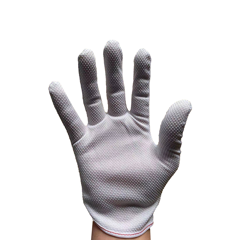 Долоняна частина рукавички обробляється спеціальними плямами з ПВХ, що значно підвищує продуктивність проти ковзання рукавички. Додавши плями ПВХ на поверхні базового матеріалу, рукавички можуть забезпечити більш сильне тертя під час роботи та запобігти ковзанню предметів під час захоплення та роботи. Цей антиплавний дизайн відіграє життєво важливу роль у підвищенні ефективності роботи та експлуатаційної стабільності, особливо у виробничих умовах, які потребують точного контролю, і може ефективно знизити ризик залежності.