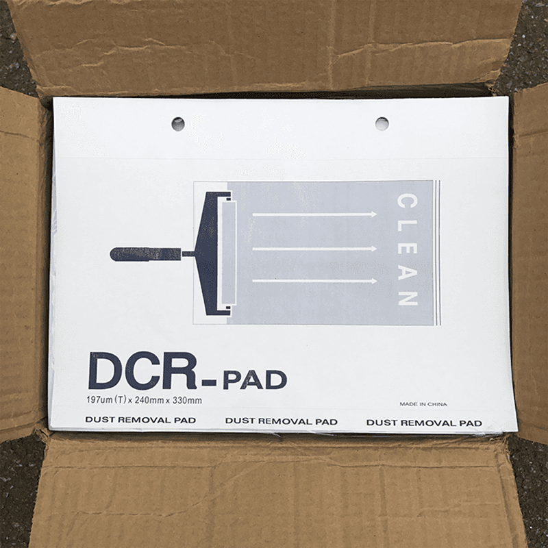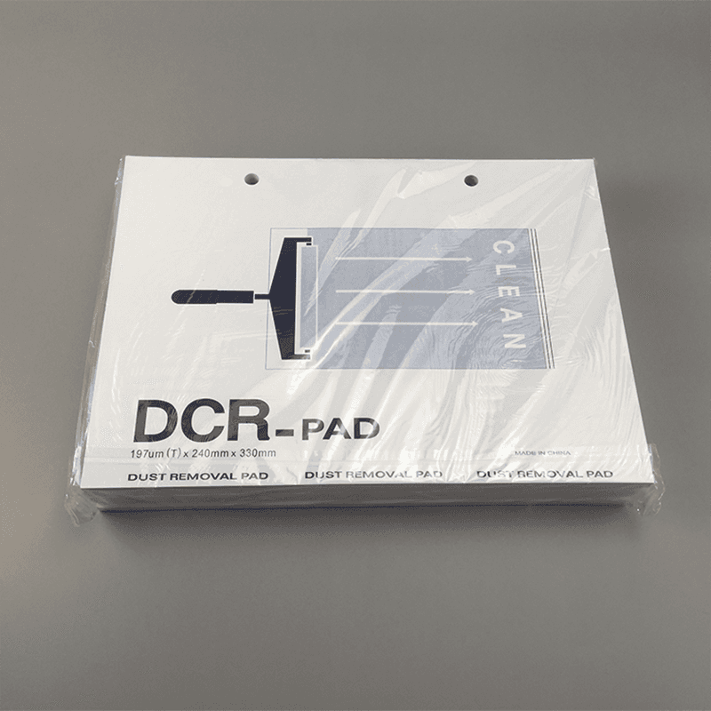 DCR прокладки спеціально розроблені для очищення силіконових липких роликів і забезпечують ефективне очищувальне рішення. При використанні просто відірвіть захисний папір на накладці DCR і натисніть силіконовий липкий валик на DCR в одному напрямку, щоб перенести пил і домішки, прикріплені до липкого валика до колодки DCR. Цей метод може ефективно видалити забруднювачі на поверхні липкого валика, відновити його оптимальний ефект видалення пилу та забезпечити чистоту виробничого середовища.